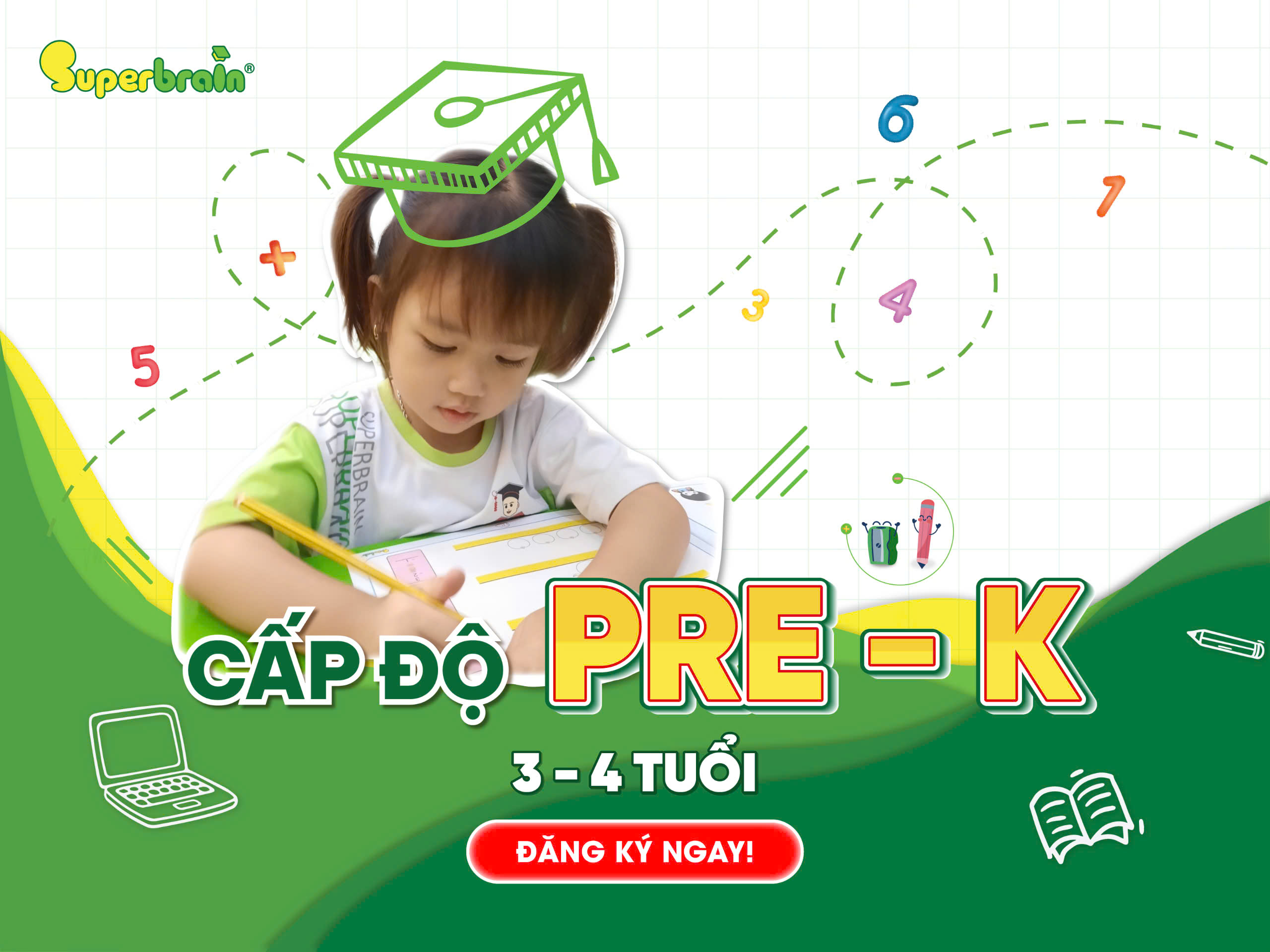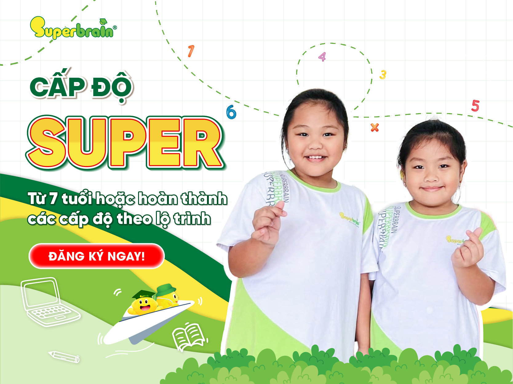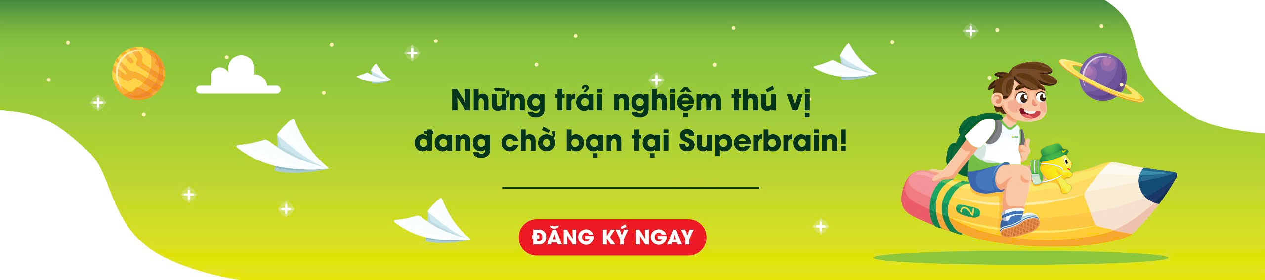 Đúng môi trườngMôi trường vừa học vừa chơi và tôn trọng tiềm năng của Trẻ. Tri thức và hạnh phúc là những điều mà Superbrain luôn muốn đem đến cho toàn bộ trẻ em Việt Nam.