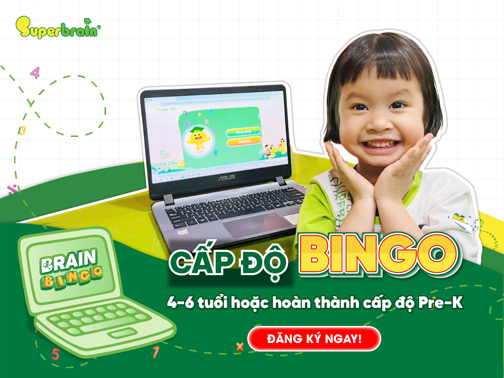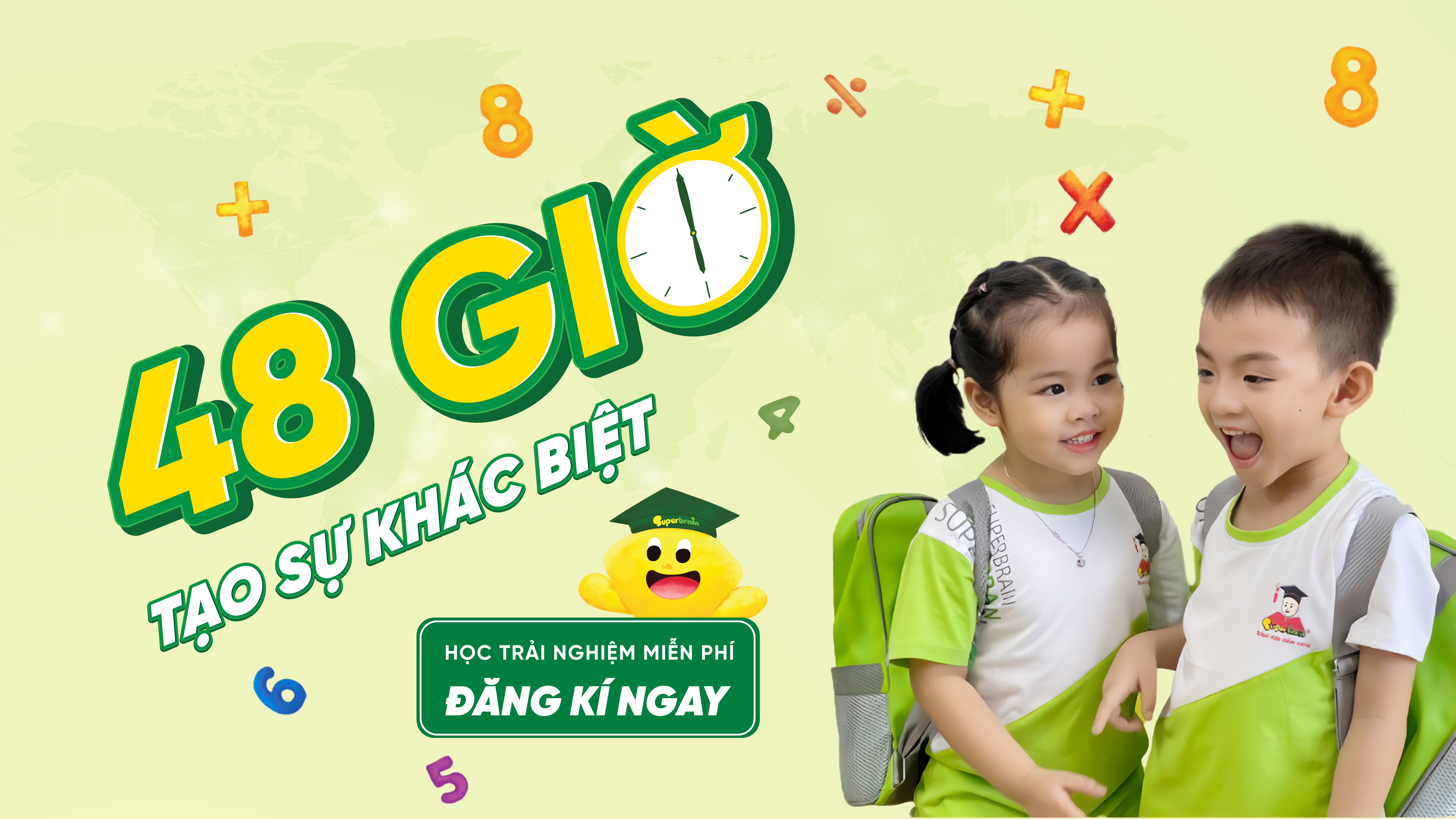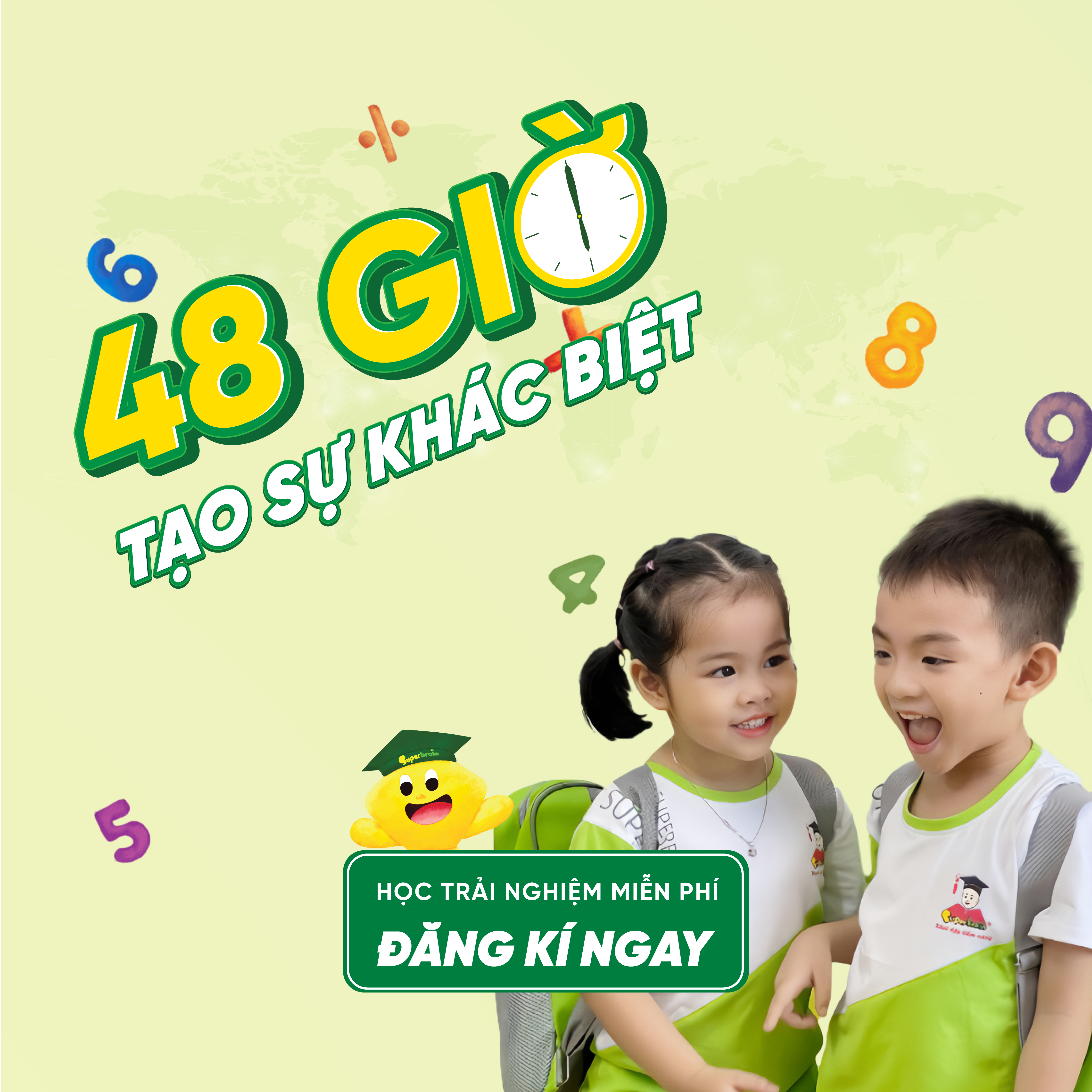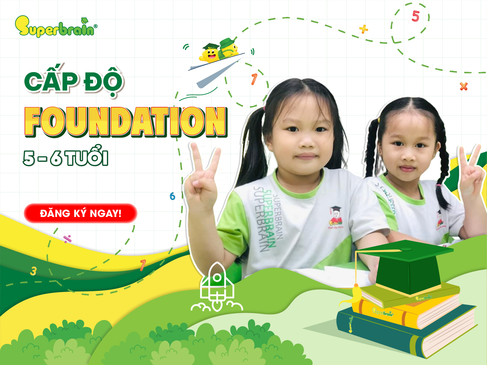 Đúng môi trườngMôi trường vừa học vừa chơi và tôn trọng tiềm năng của Trẻ. Tri thức và hạnh phúc là những điều mà Superbrain luôn muốn đem đến cho toàn bộ trẻ em Việt Nam.