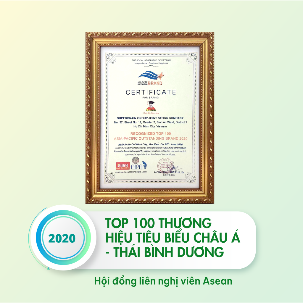 - Chứng nhận Danh hiệu “TOP 100 THƯƠNG HIỆU TIÊU BIỂU CHÂU Á – THÁI BÌNH DƯƠNG 2020” do HỘI ĐỒNG LIÊN NGHỊ VIỆN ASEAN trao tặng