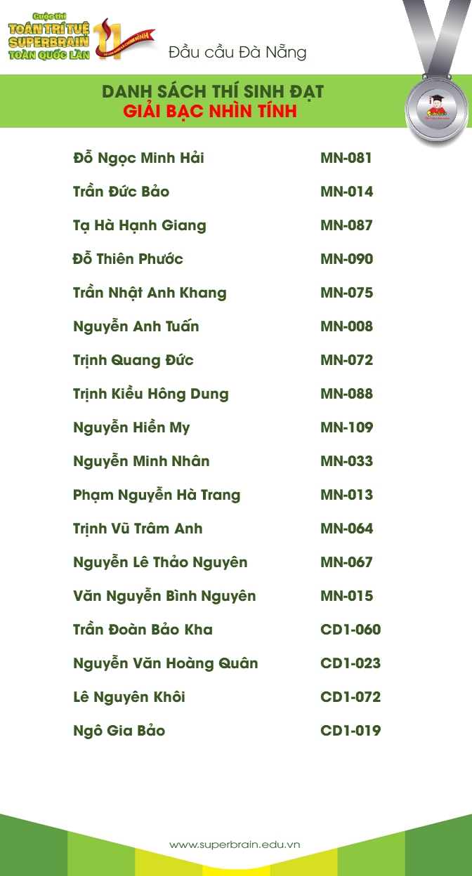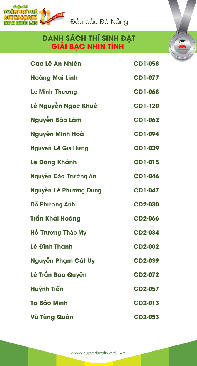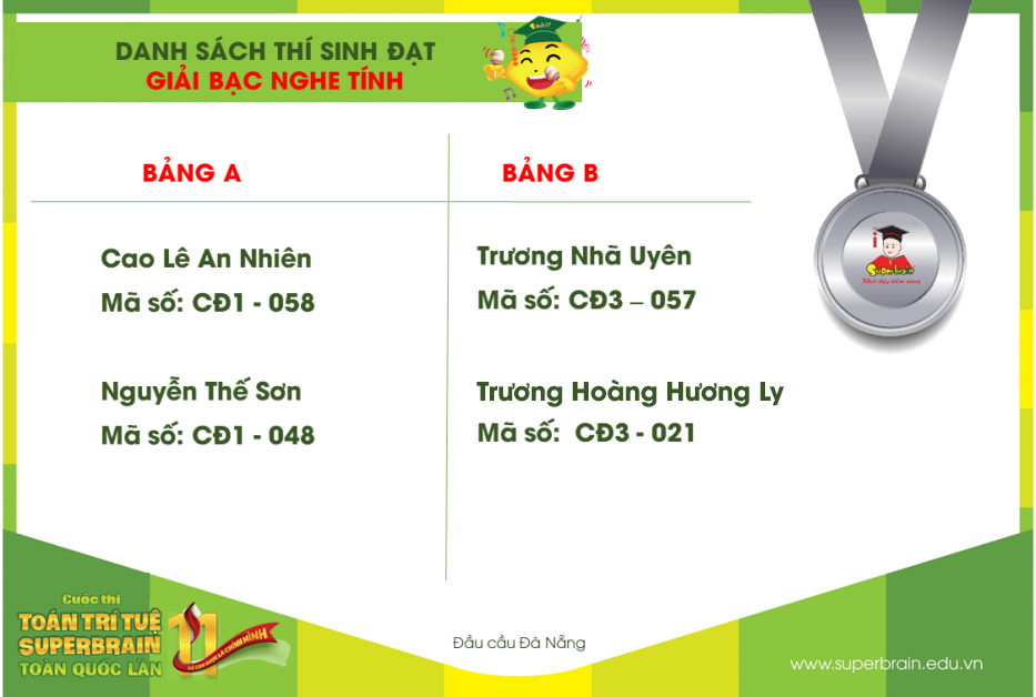 Hành trình của sân chơi lần 11 đầu cầu Đà Nãng đã kết thúc, Superbrain công bố kết quả. Kết quả này sẽ là một cột mốc đánh dấu sự trưởng thành cho tất cả các bạn thí sinh. Hi vọng rằng từ một sân chơi không thành tích, không quan trọng thắng thua, các bạn nhỏ sẽ tự trải nghiệm và khơi dậy được tiềm năng của chính mình. Superbrain xin chúc mừng tất cả các bạn thí sinh