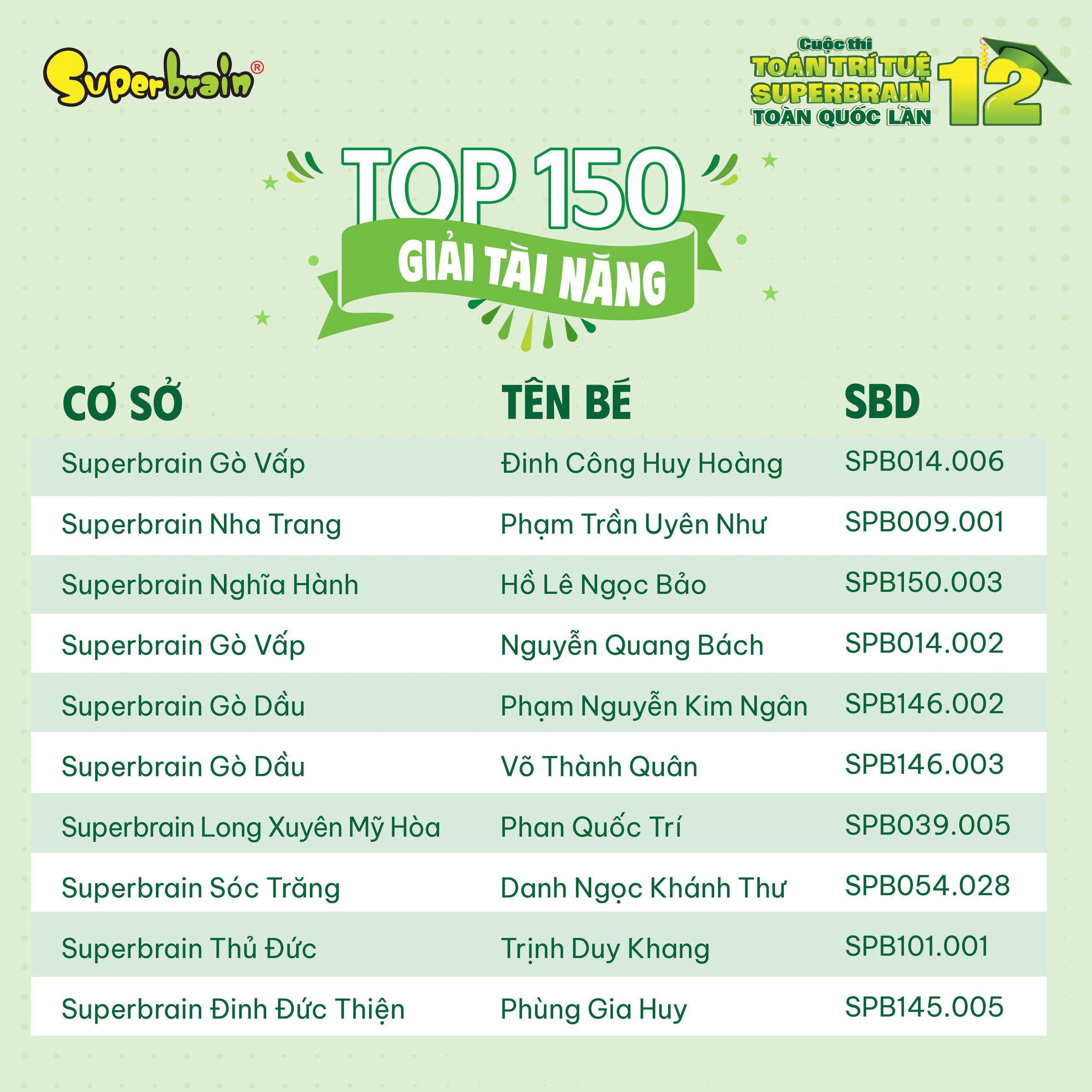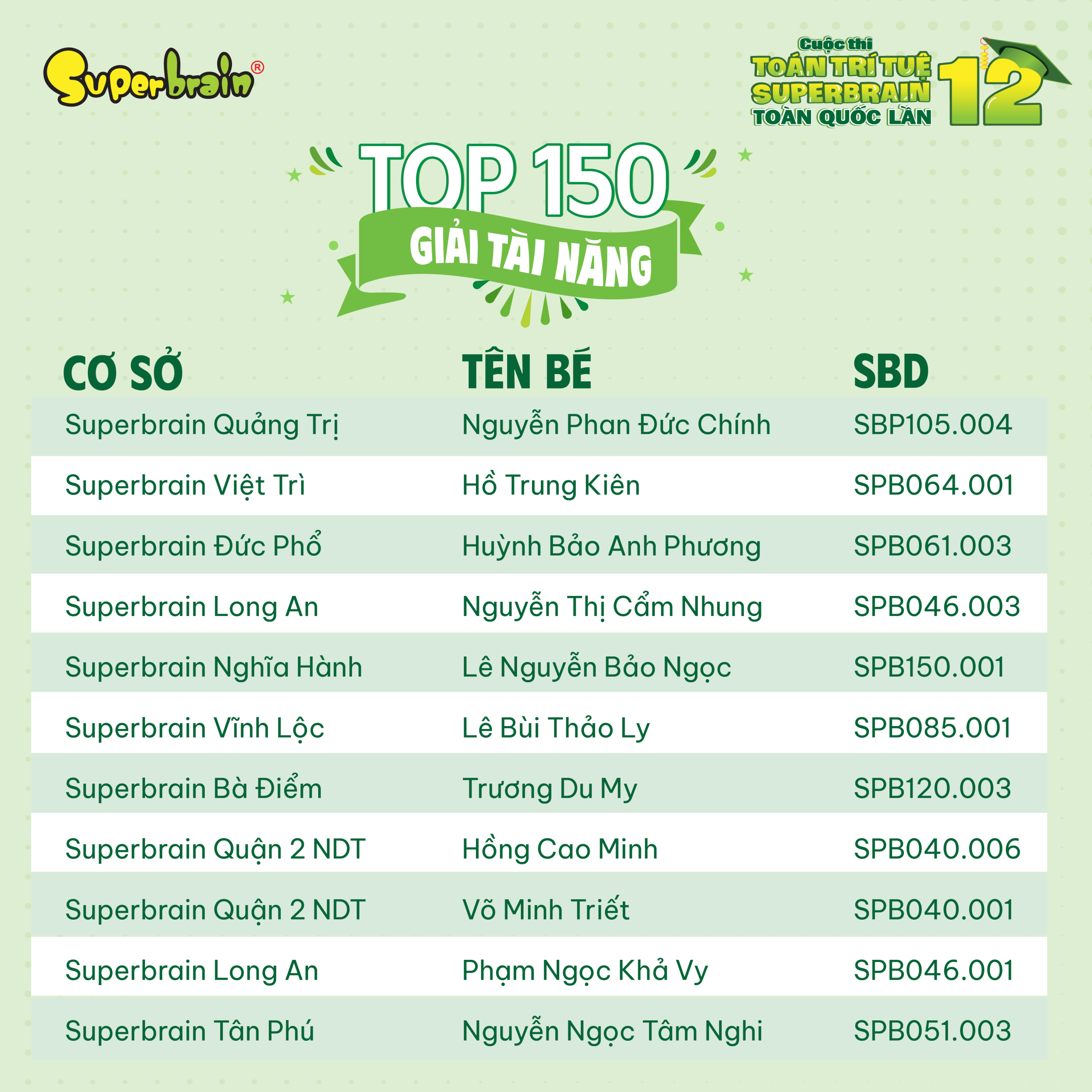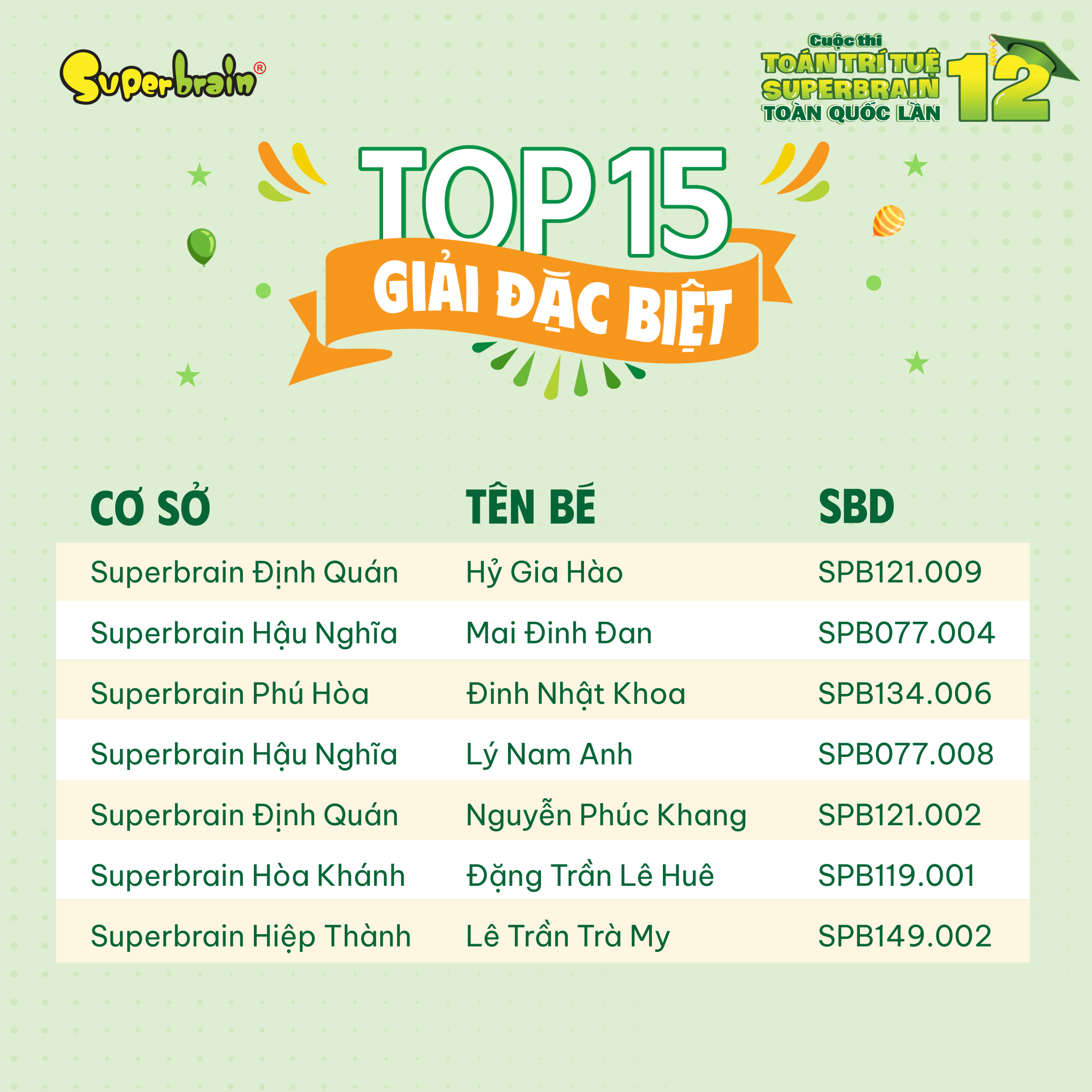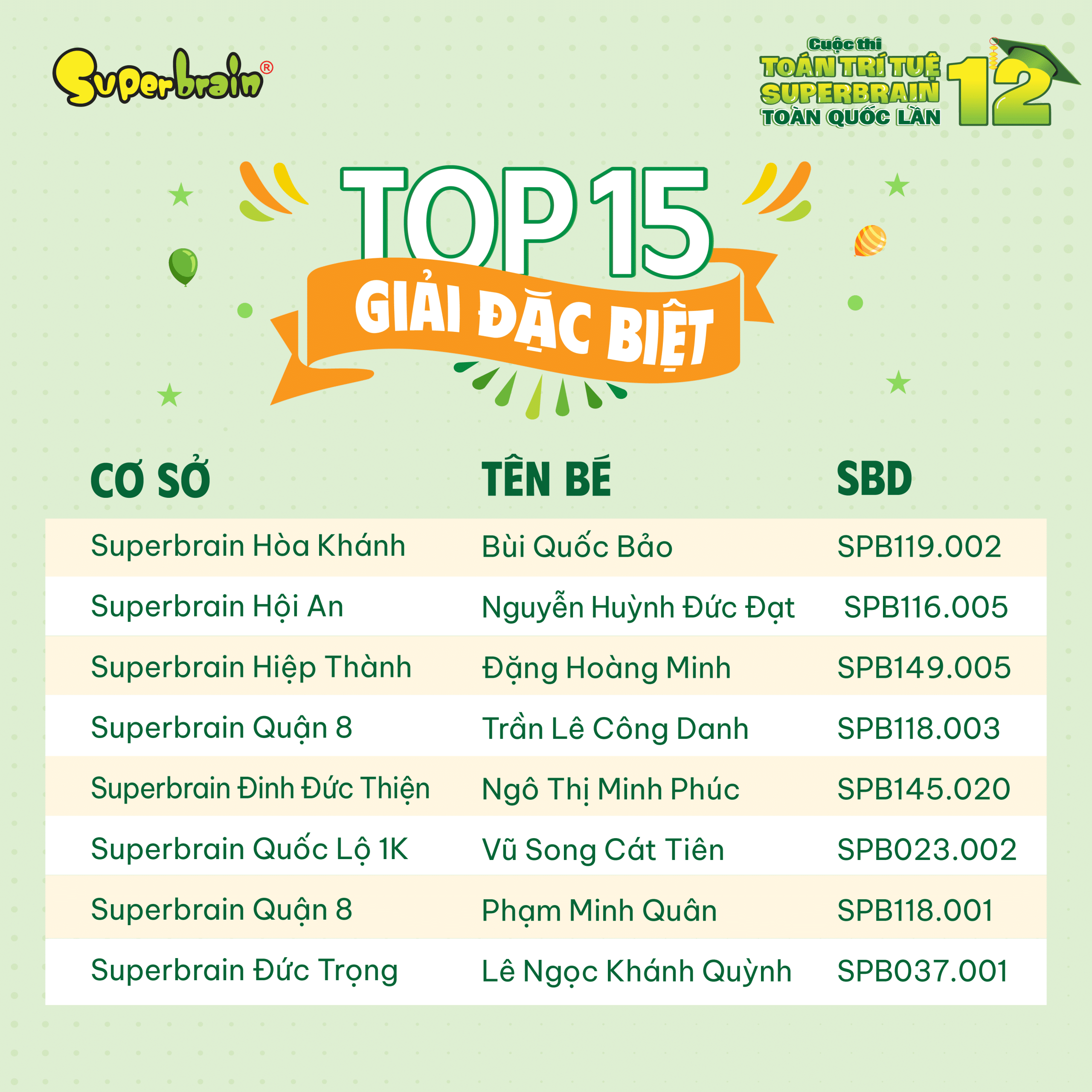 Các bạn có tên trong danh sách sẽ được trao giải trên sân khấu tại CUỘC THI TOÁN TRÍ TUỆ SUPERBRAIN TOÀN QUỐC LẦN 12 – NĂM 2023.