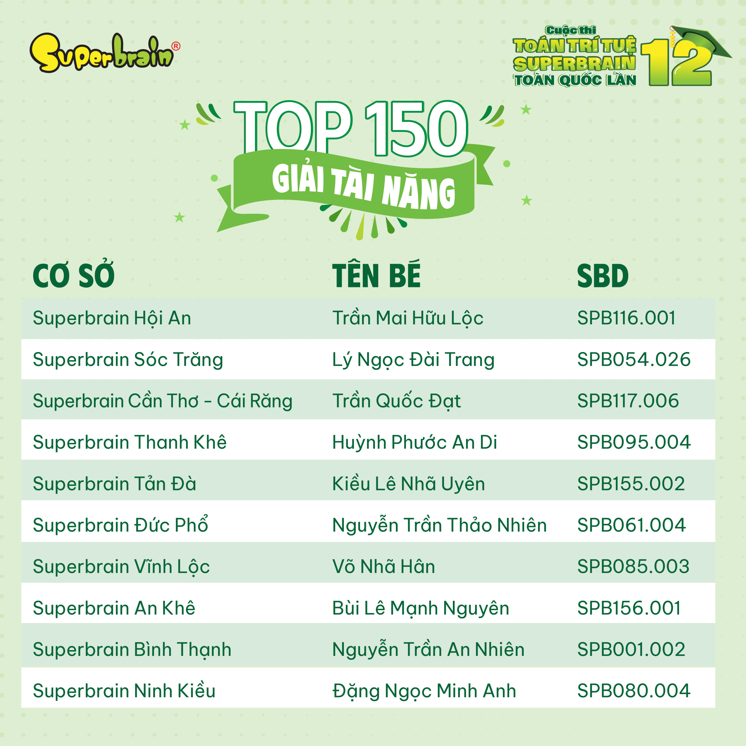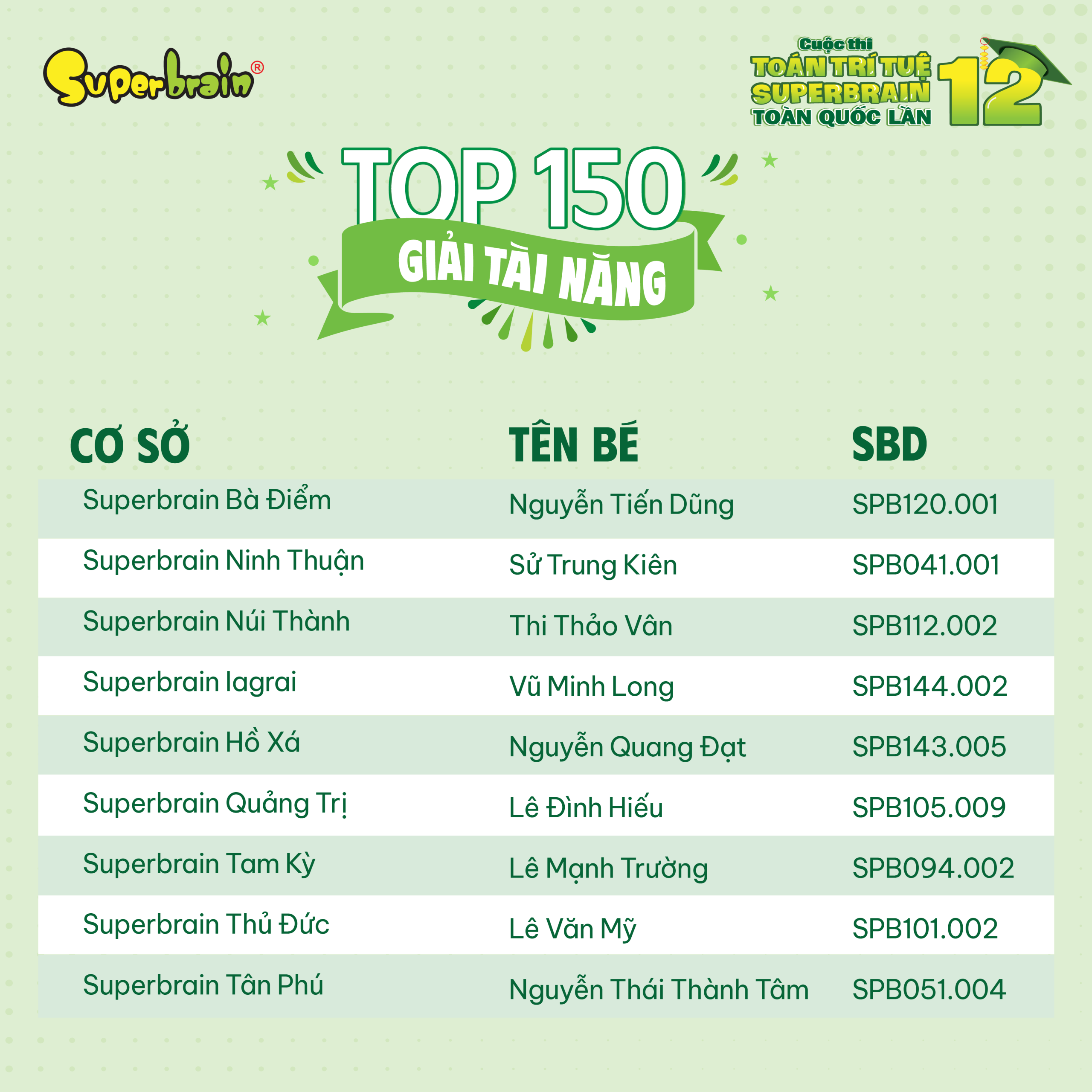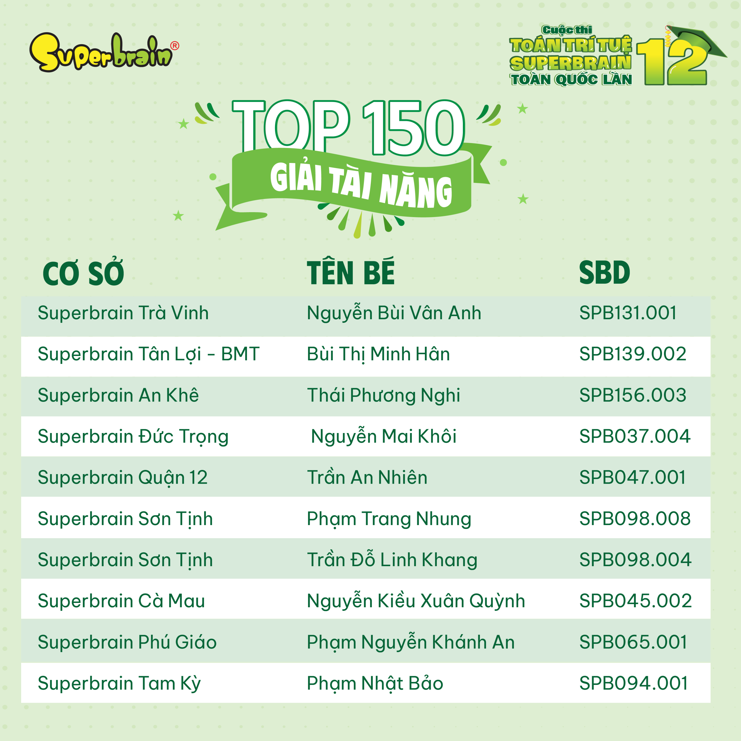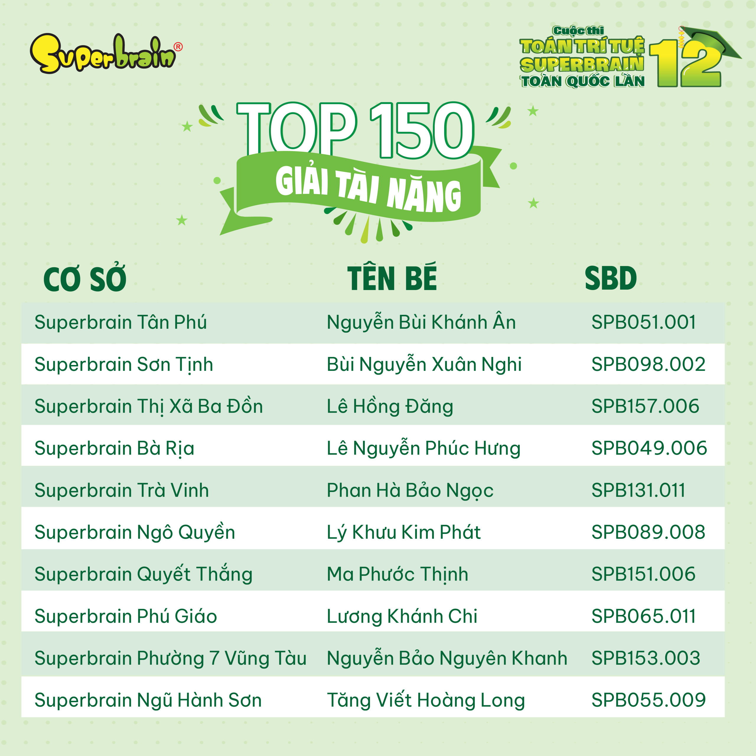 Các bạn có tên trong danh sách sẽ được trao giải trên sân khấu tại CUỘC THI TOÁN TRÍ TUỆ SUPERBRAIN TOÀN QUỐC LẦN 12 – NĂM 2023.