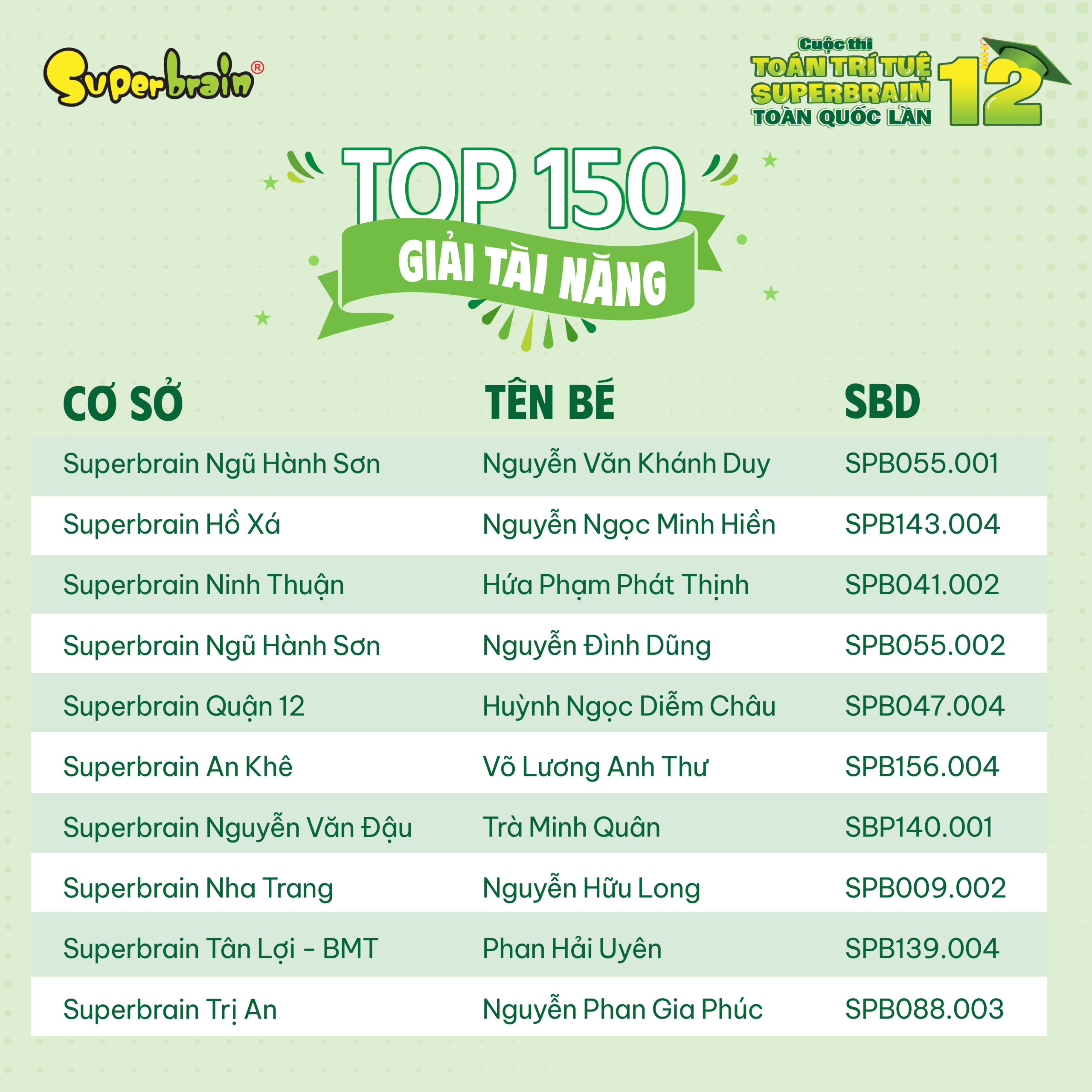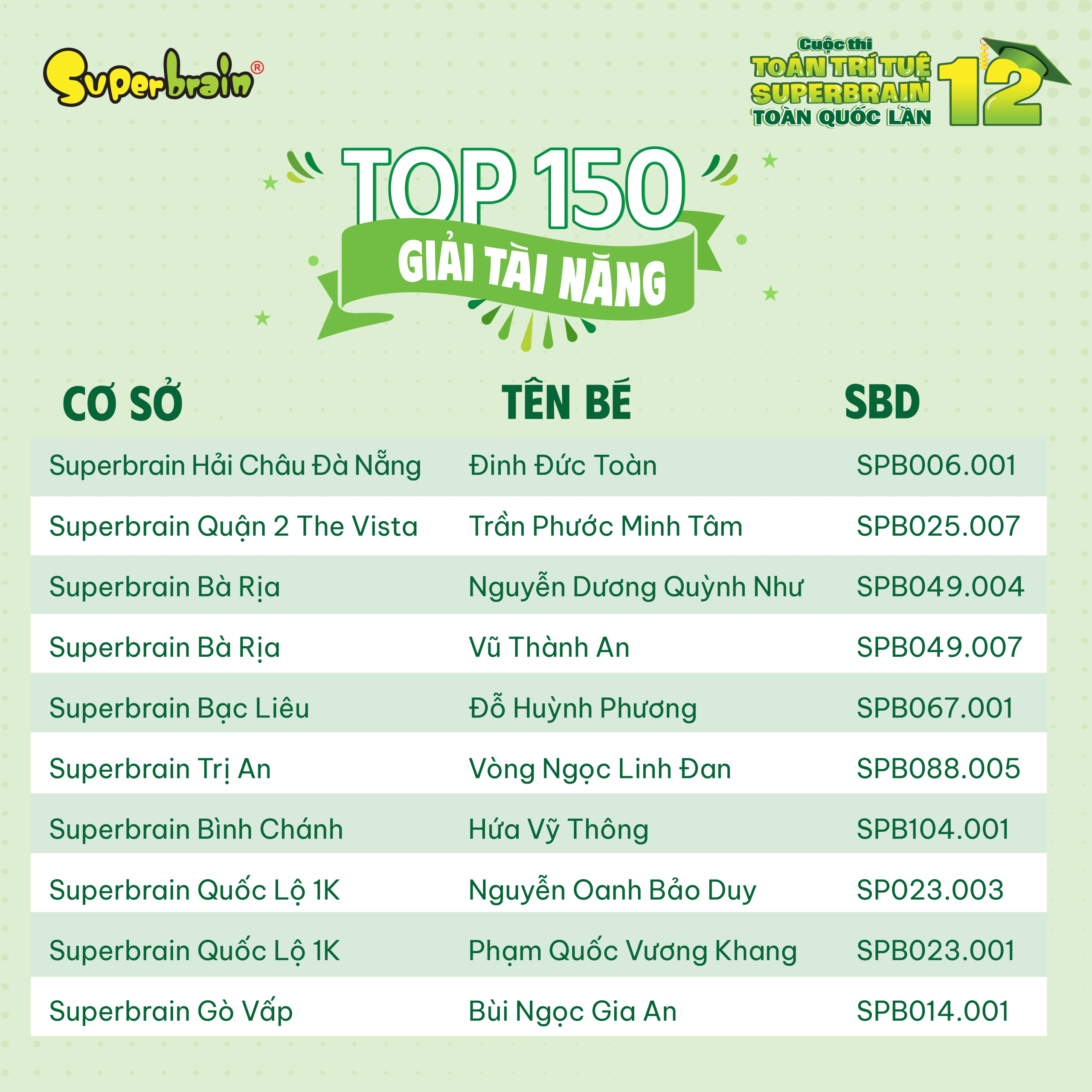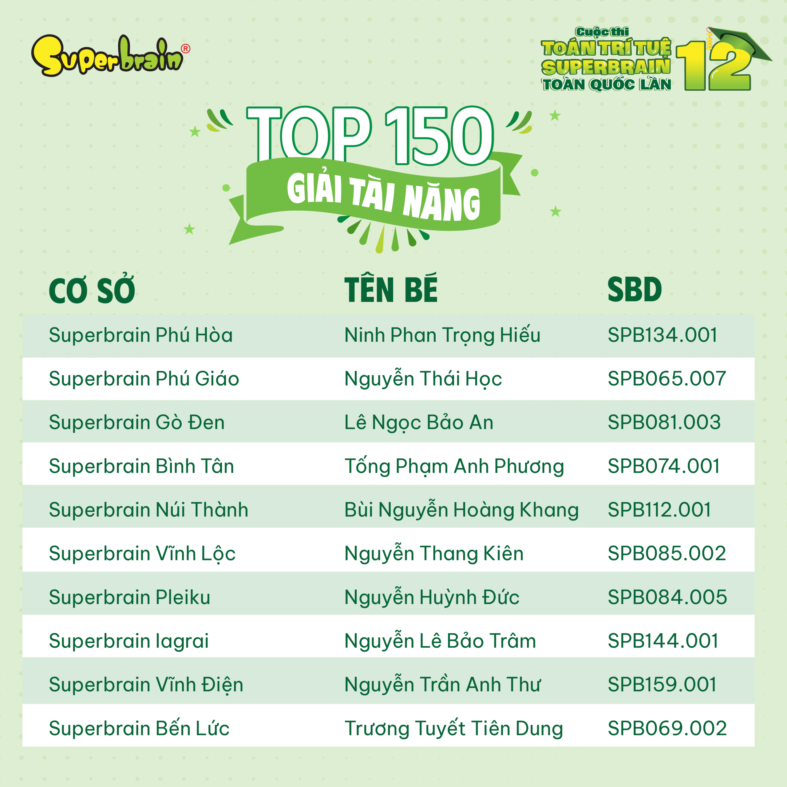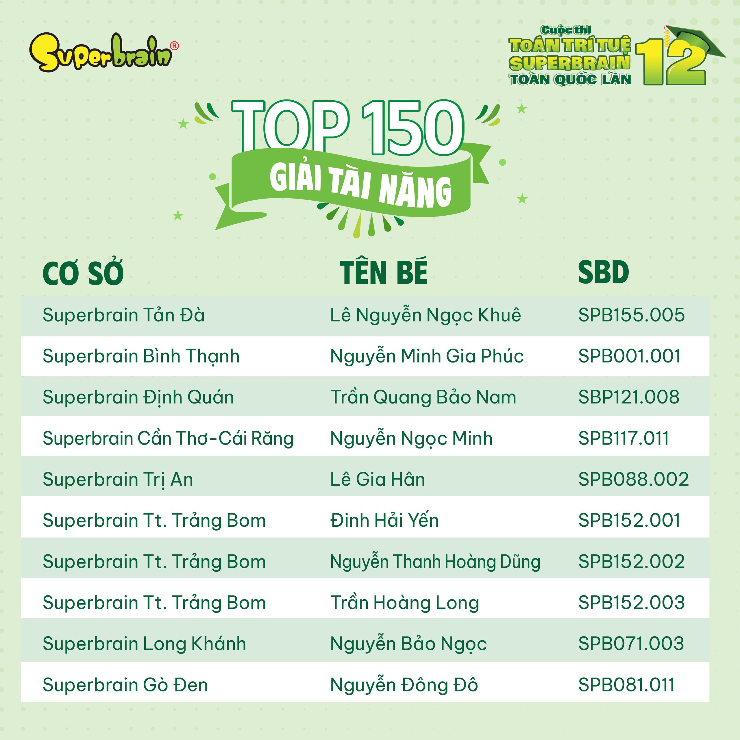 Các bạn có tên trong danh sách sẽ được trao giải trên sân khấu tại CUỘC THI TOÁN TRÍ TUỆ SUPERBRAIN TOÀN QUỐC LẦN 12 – NĂM 2023.