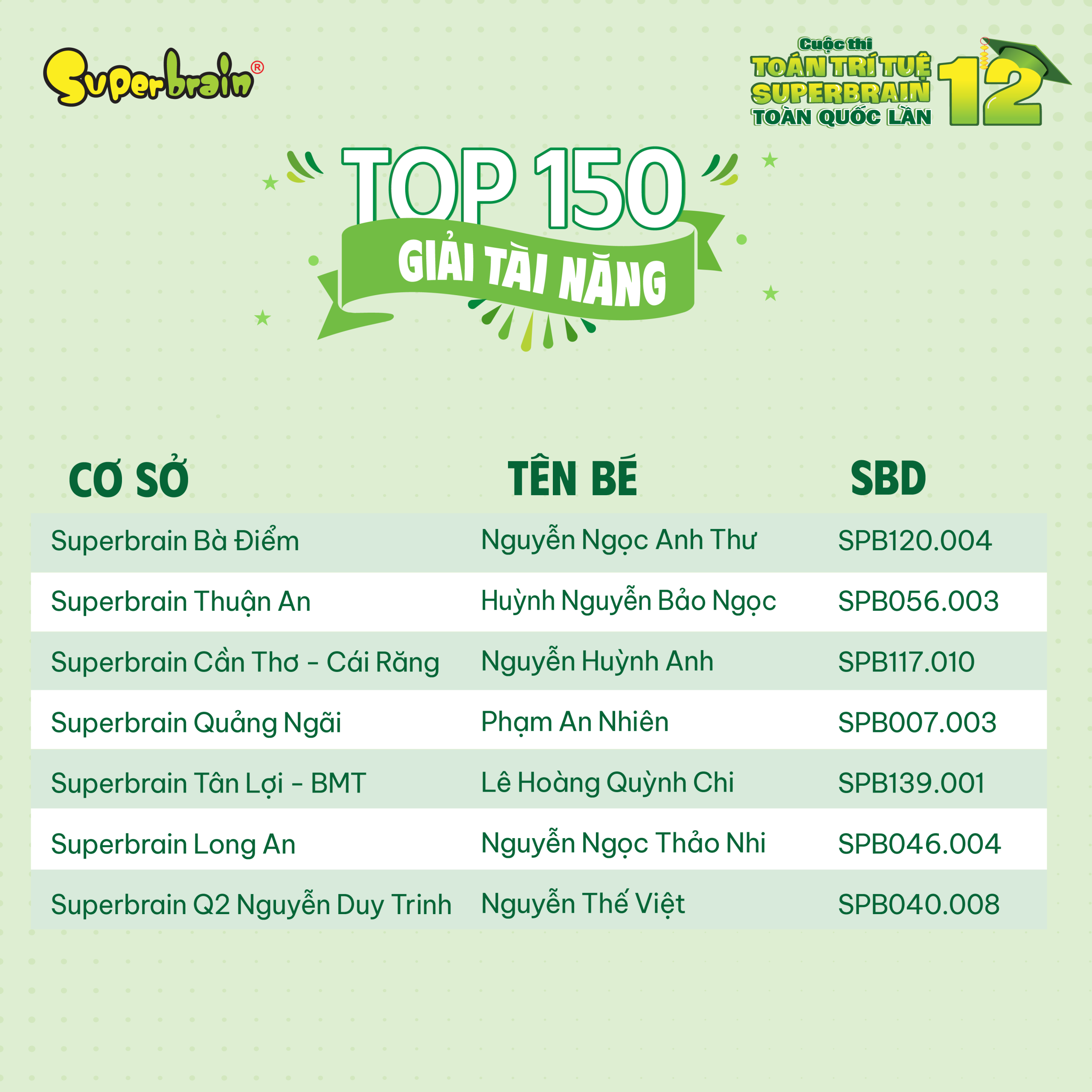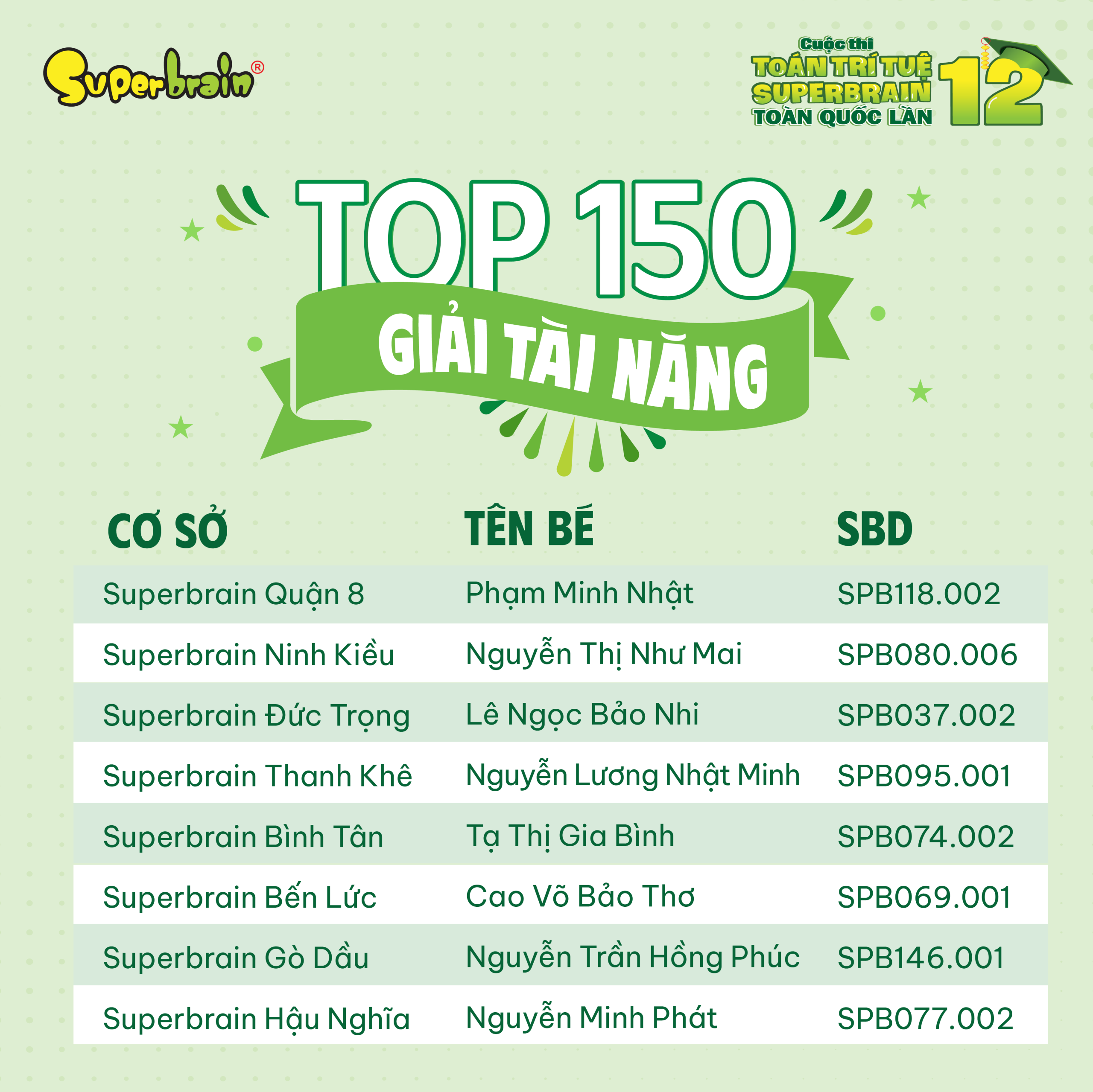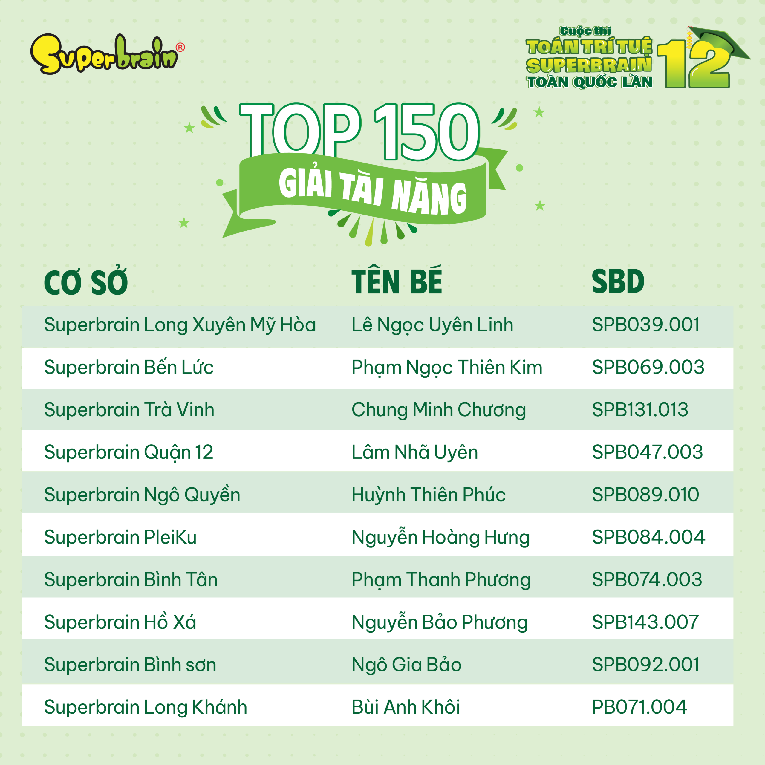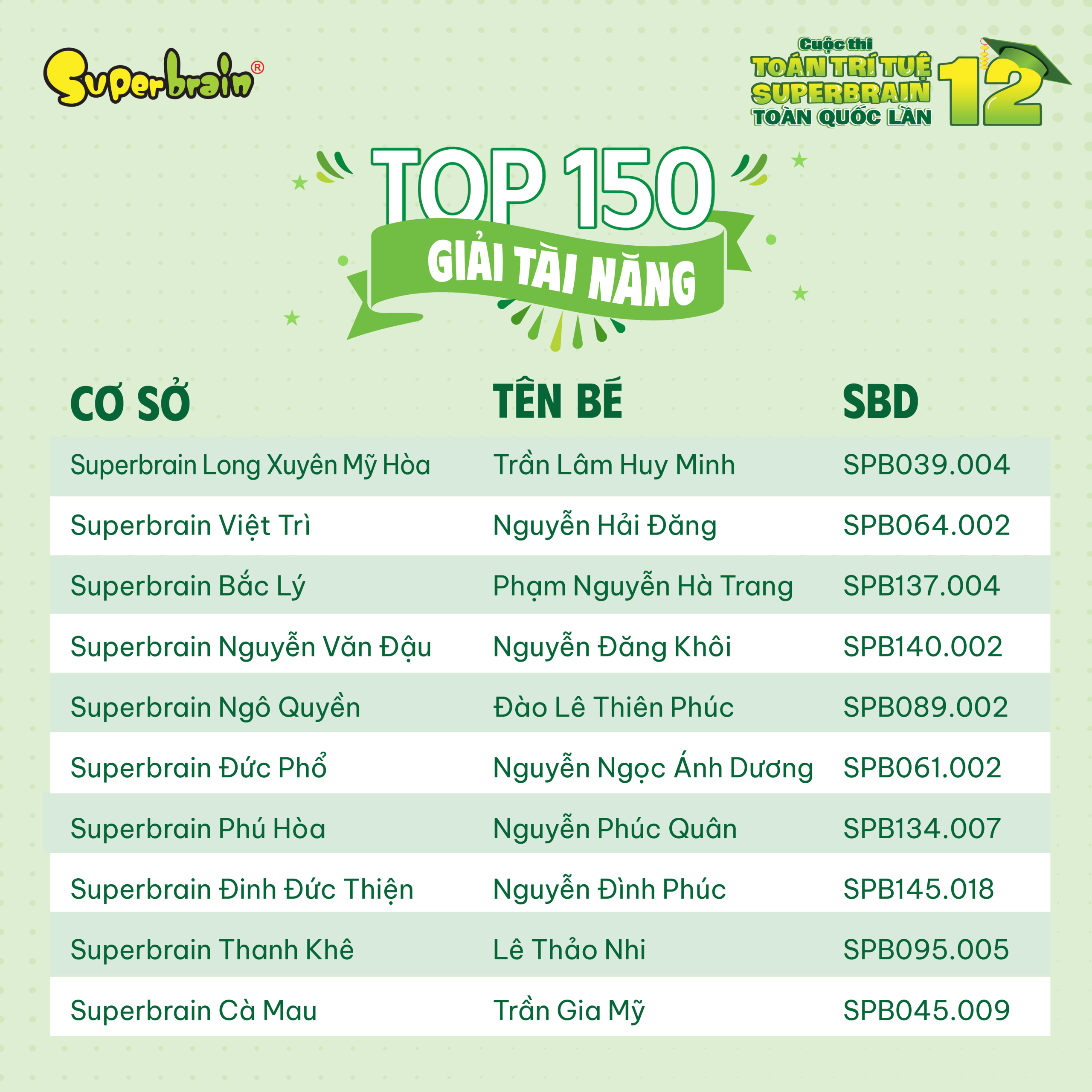 Các bạn có tên trong danh sách sẽ được trao giải trên sân khấu tại CUỘC THI TOÁN TRÍ TUỆ SUPERBRAIN TOÀN QUỐC LẦN 12 – NĂM 2023.