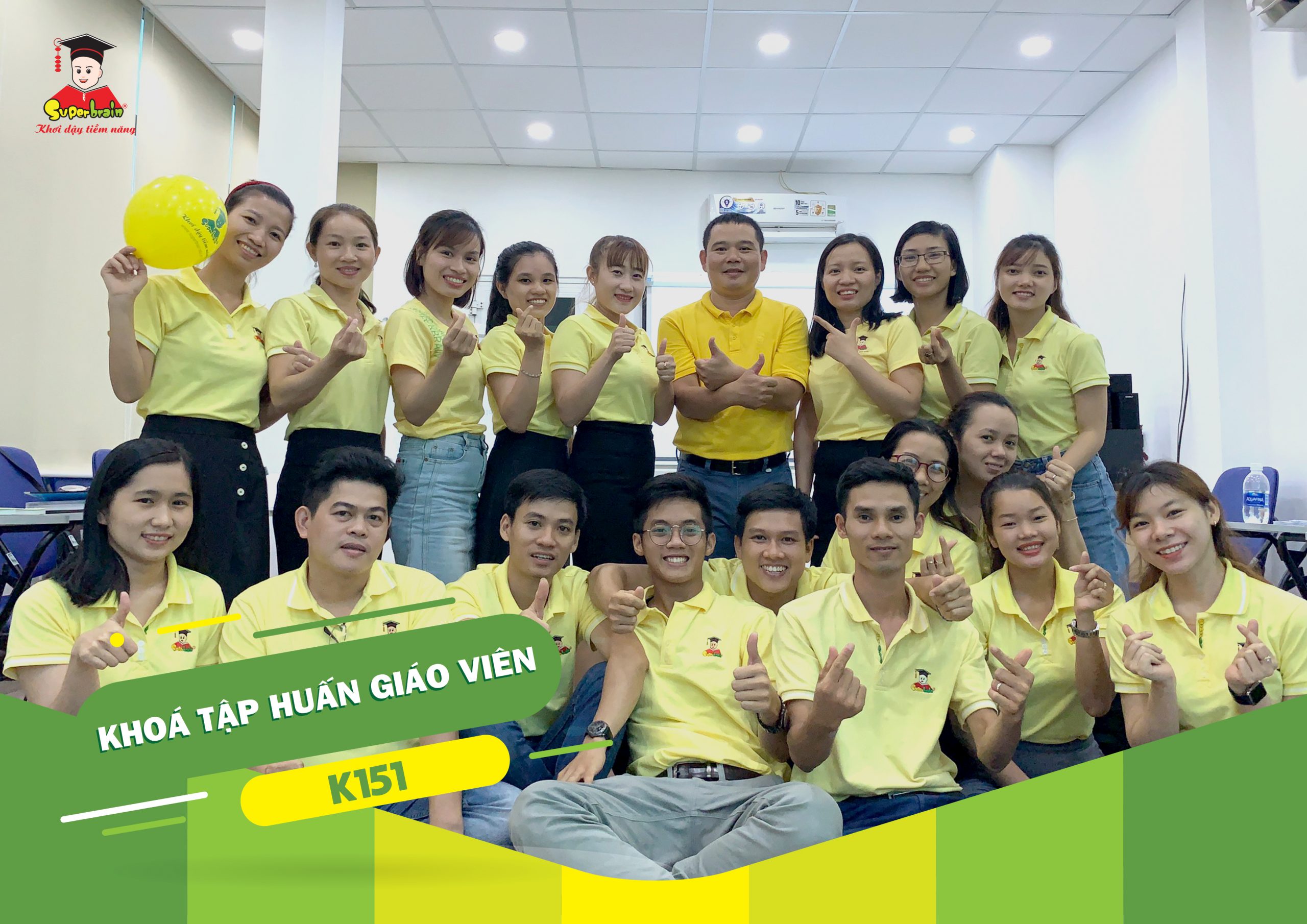 Khóa tập huấn giáo viên là một chương trình đào tạo chuyên môn dành cho các thầy cô hệ thống Superbrain.Trở lại sau kì nghỉ dài, khóa tập huấn giáo viên K151 mang lại rất nhiều giá trị kiến thức lẫn cảm xúc đọng lại trong mỗi thầy cô khi tham gia. Khóa tập huấn giáo viên K151 với sự tham gia của các cơ sở Superbrain Hậu Lộc, Superbrain Long Xuyên Đông Xuyên, Superbrain Quảng Ngãi, Superbrain Yên Thế, Superbrain Định Quán, Superbrain Quận 2 Nguyễn Duy Trinh, Superbrain Bà Điểm, Superbrain Trảng Bom, Superbrain Đồng Xoài, Superbrain Xuyên Mộc.